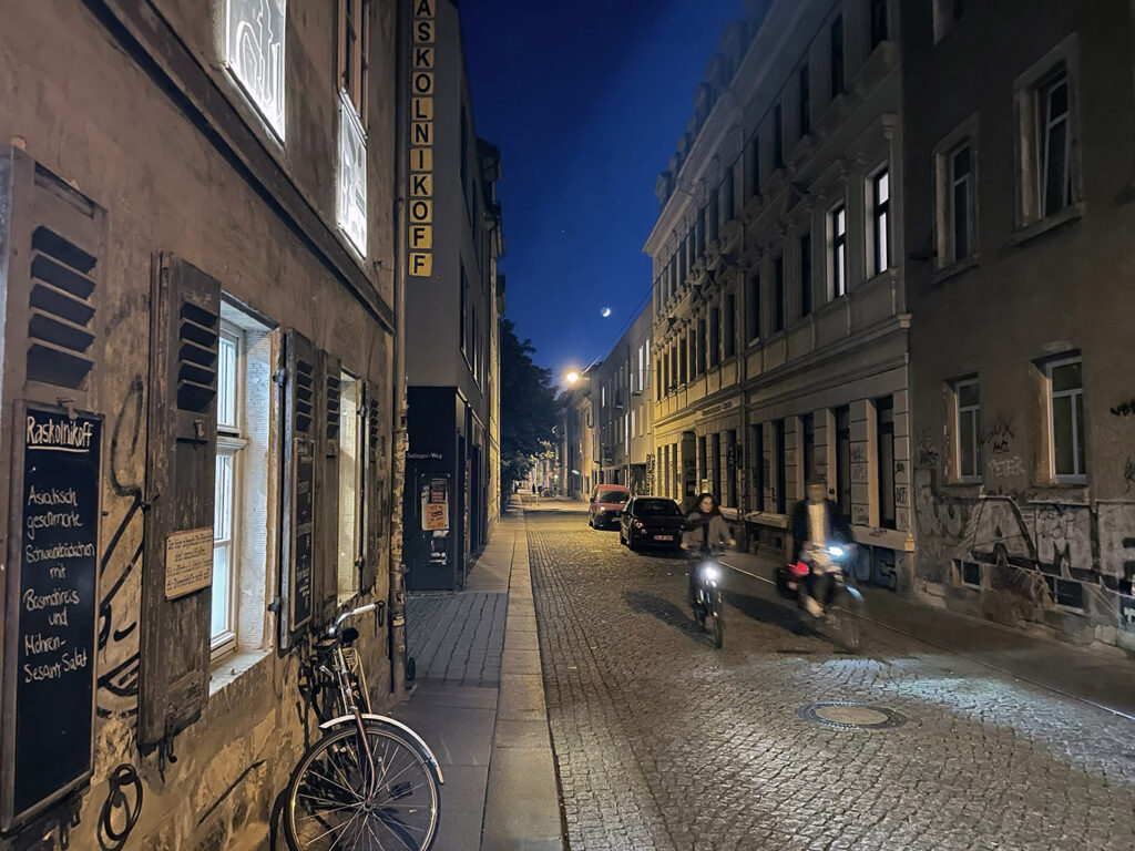 Neustadt (nybyen) nord i Dresden er et mer urbant og ungdommelige tumlested. Deler av bydelen er særlig kjent for utvalget av gater som gjøres om til det som best kan forklares som «frisoner», der små entreprenører får gjøre omtrent hva de vil.
